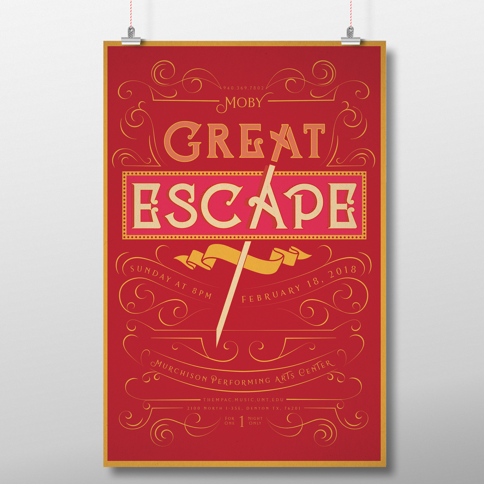 This type poster was a student project designed to visualize the song by Moby called Great Escape.